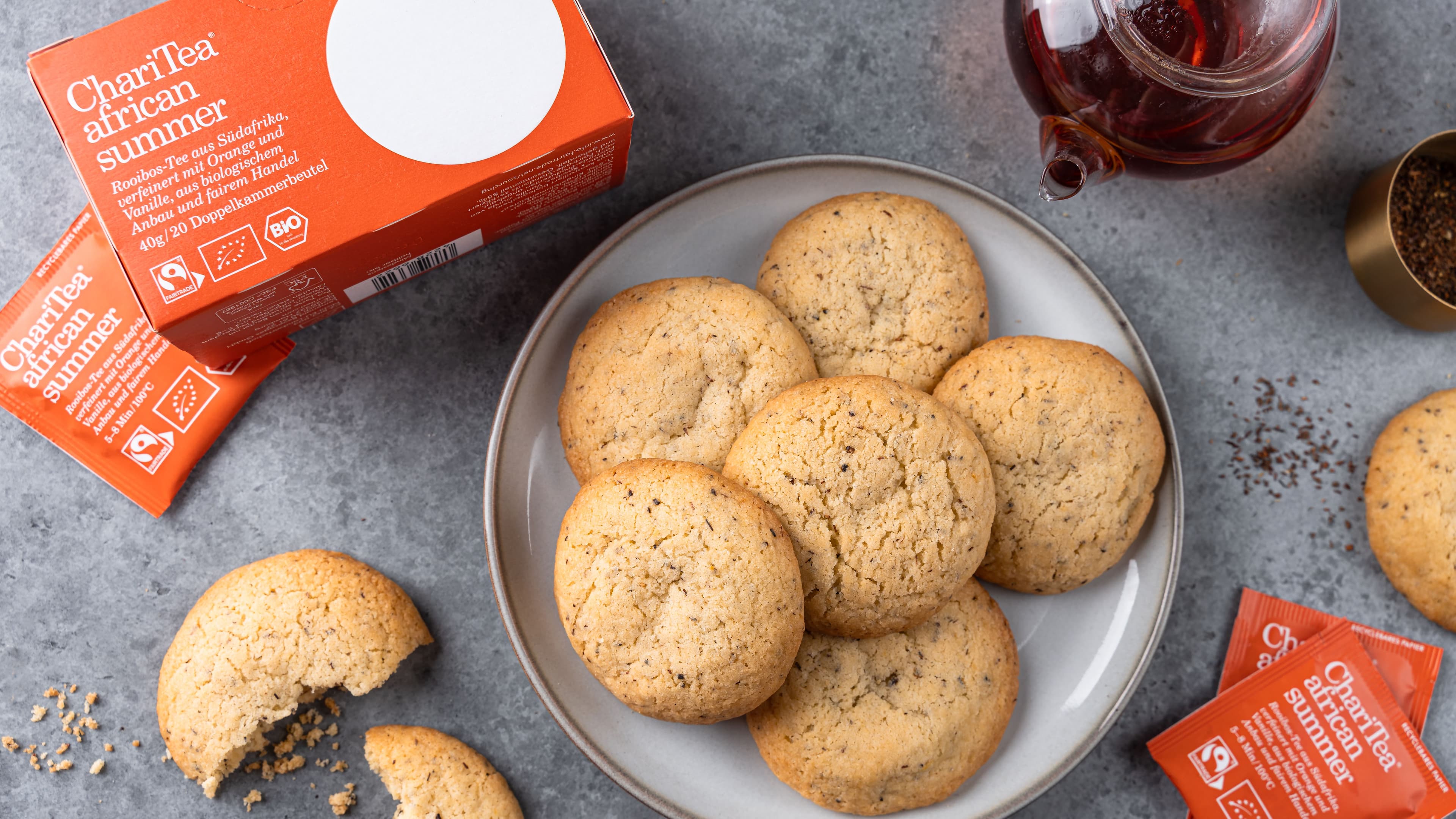 Zart gewürzte Rooibos-Tee-Cookies mit feiner Vanille- und frischer Zitronennote – innen weich, am Rand leicht goldbraun und perfekt zu einer Tasse Tee.
